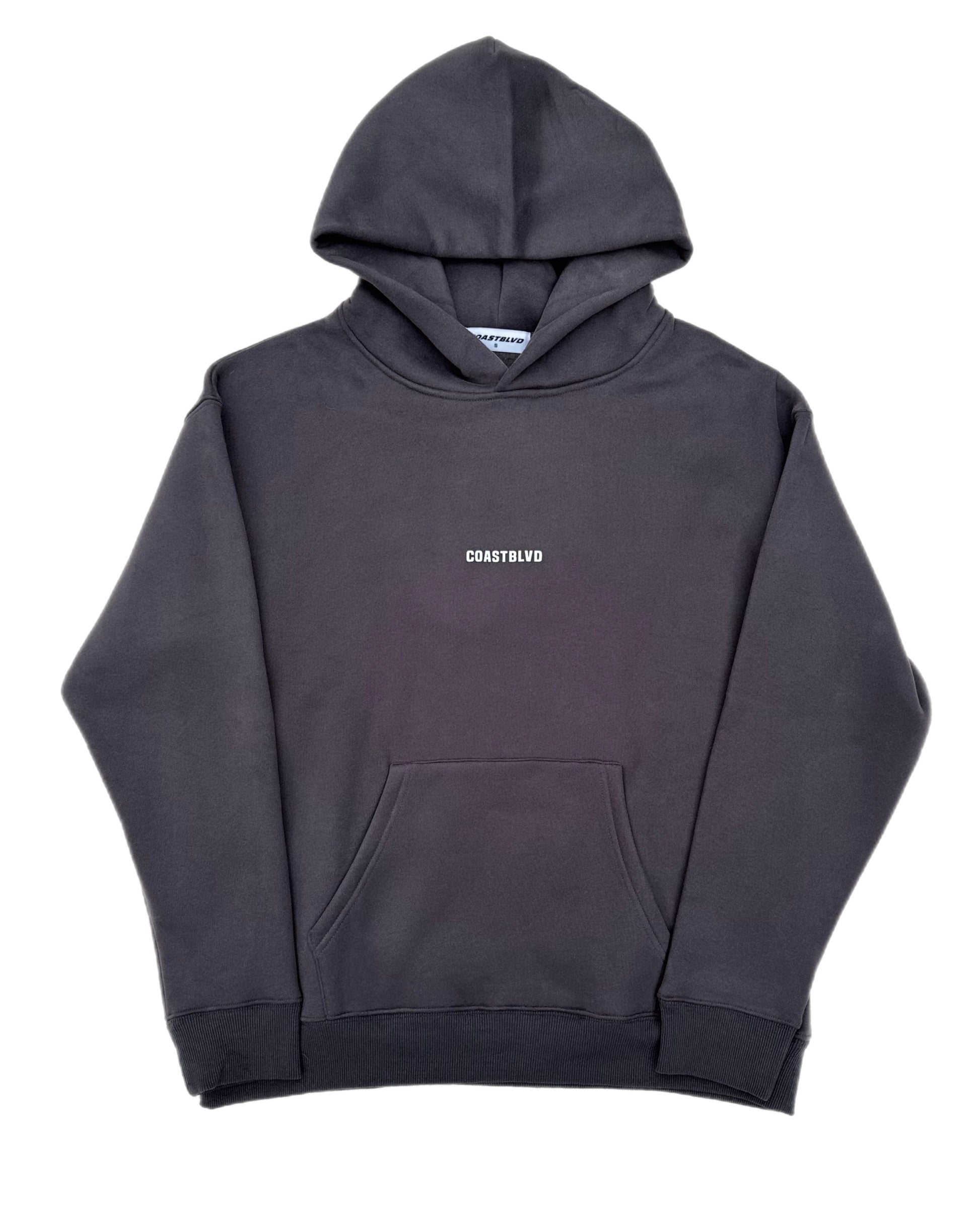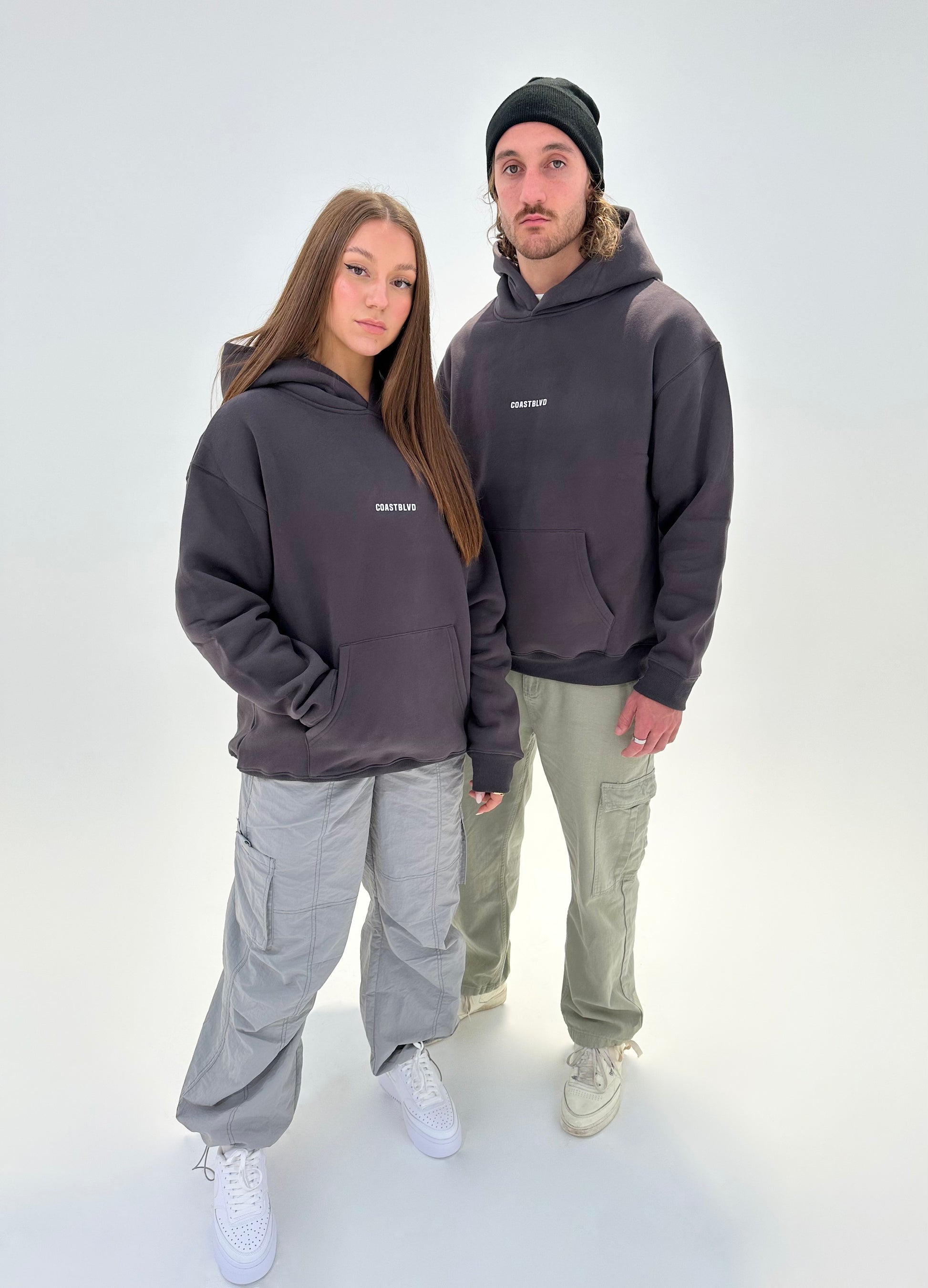 Introducing our highly-sought after Coast Blvd hoodie in charcoal.